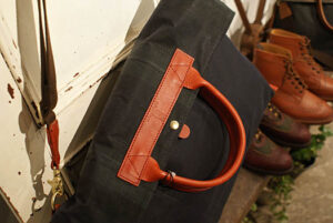 デザイナーの下間です。 ショルダーバックとしても使用可能な2WAY スモールトートバックの紹介です。 メインのファブリックは、防水性に優れた英国ミラレーン社の4オンスWAXD COTTON。 オイル加工独特の風合いは、使 […]